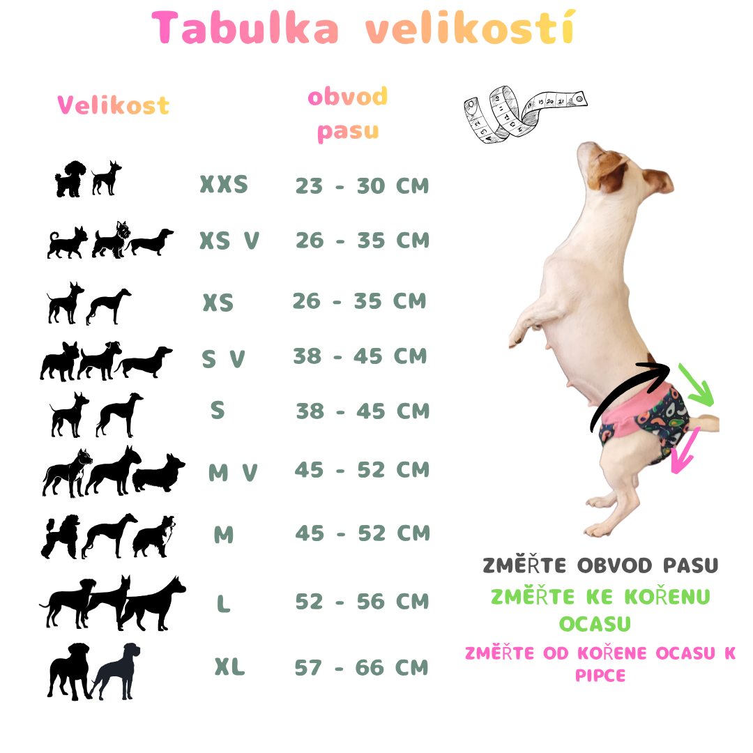 Pokud jste zde svou velikost nenašli, po domluvě je možné ušít přímo na míru psí slečny.